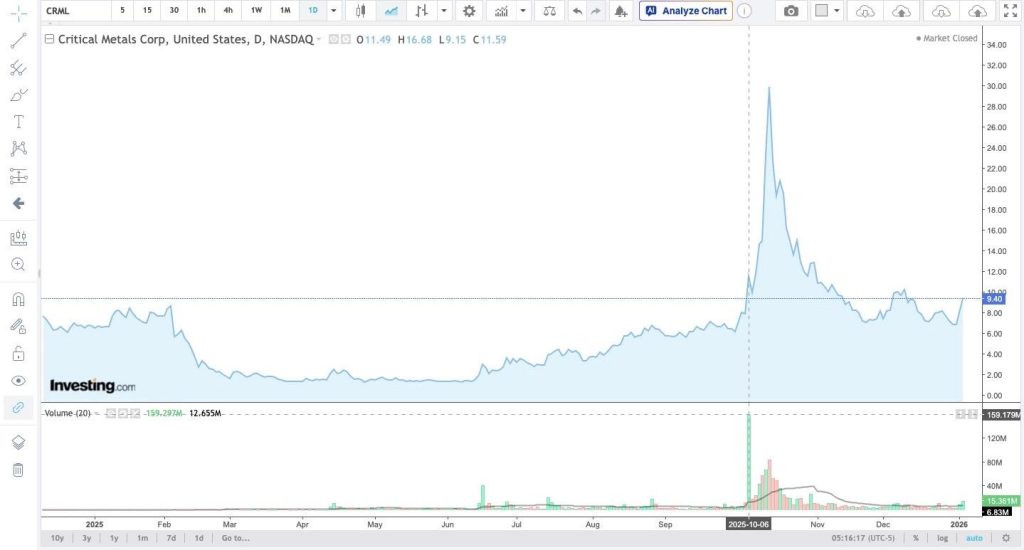 Într-un articol publicat inițial pe 3 octombrie 2025, într-o vineri seară, după închiderea bursei din New York, agenția Reuters relatează pe surse că ar fi existat discuții în cadrul administrației Trump cu privire la intrarea guvernului federal în acționariatul CRML.